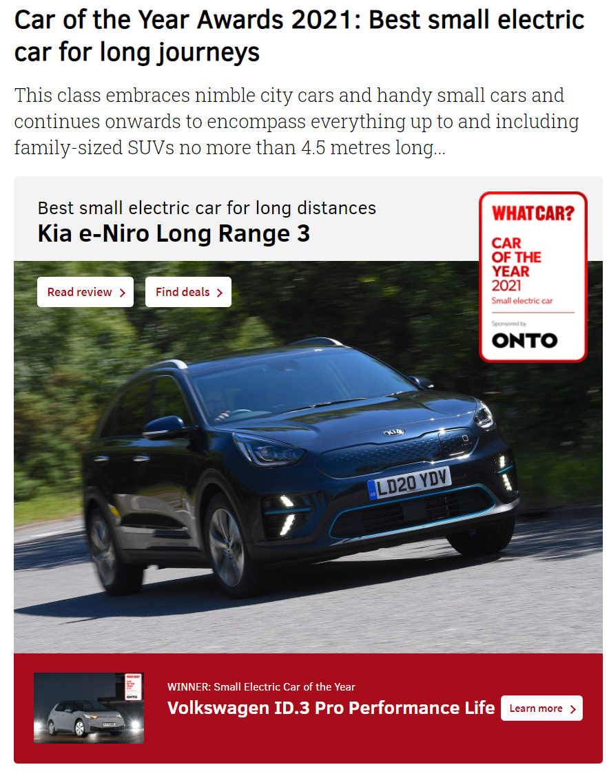 깐깐한 유럽 시장에서도 선전하고 있는데, e-니로가 올해의 차로 선정되었습니다.