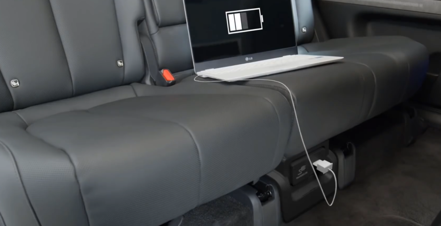 2열 시트 하단에는 집에서 사용하는 기기를 그대로 사용할 수 있는 V2L 기술이 제공됩니다.