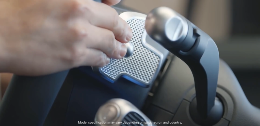 스티어링 바로 아래에는 시프트 페들을 볼 수 있는데, 내연 기관 시대에는 기어를 변경하기 위한 목적이었다면