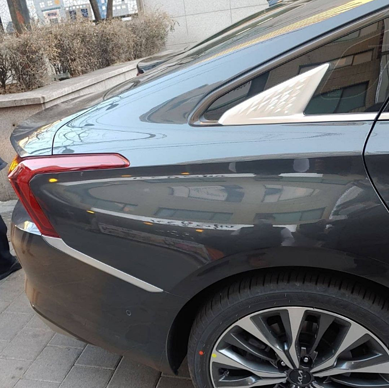 도어 아래에서 테일램프로 이어지는 하키 스틱과 같은 디자인은 측면부 디자인을 역동적인 모습으로 보이게 만드는데, K8의 전장이 5미터가 넘어가기 때문에 실차로 본다면 K5나 스팅어, G80보다도 좀 더 스포티한 느낌을 받게 될 것 같네요!