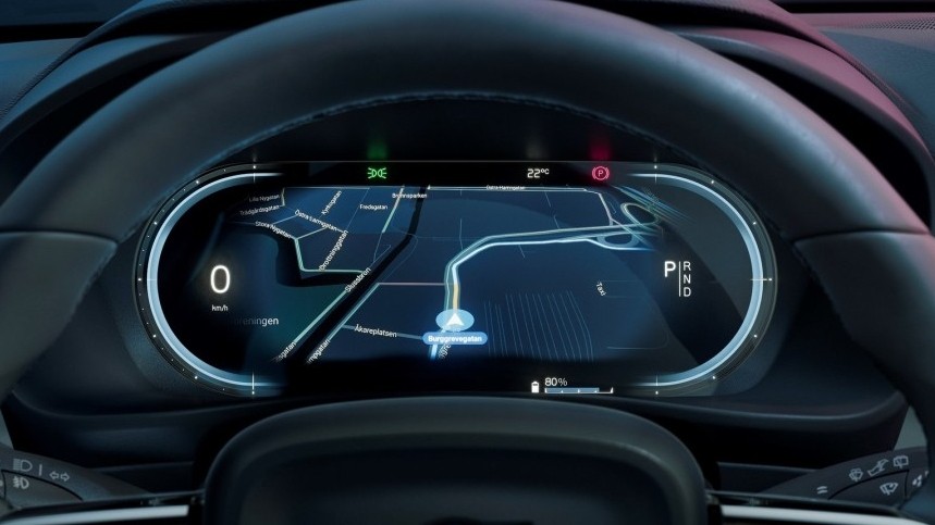 맵인 방식의 계기판은 왼쪽에는 속도계가 제공되며, 오른쪽에는 드라이브가 보입니다.