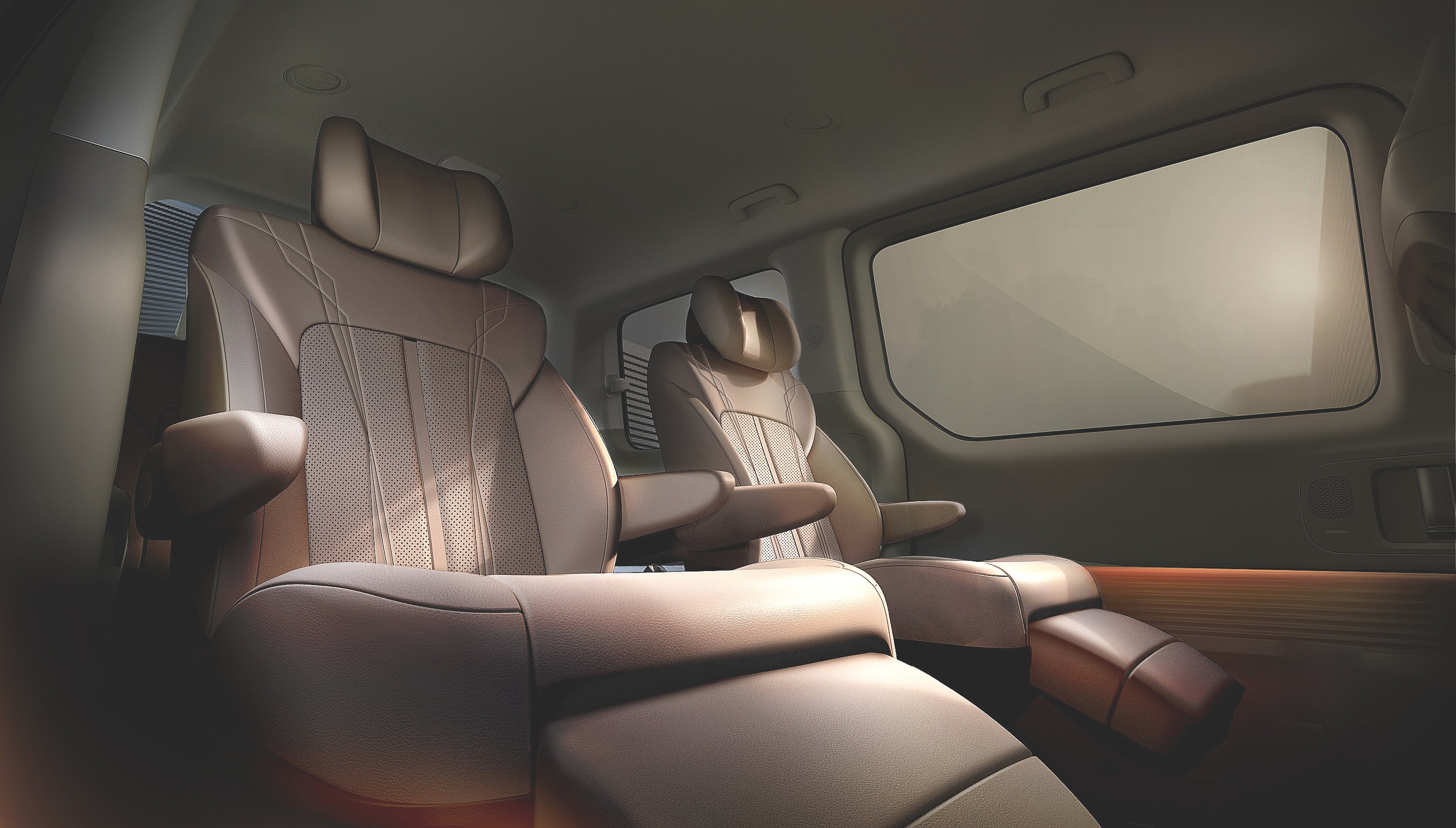 실내의 디자인은 고급 라운지를 연상시키는 디자인입니다. 스타렉스 후속 맞나요?