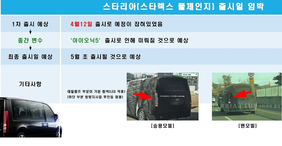 이번 스타리아는 14년 만에 풀체인지가 되고 밴과 승용으로 구분되다 보니 정보를 전달해 드리는 입장에서도 쉽지 않은데, 확인이 된다면 빠르게 업데이트해드리겠습니다.