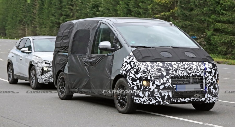 카니발과 경쟁하게 될 스타렉스 후속 스타리아의 출시가 다가오면서 양산차에 가까운 테스트 차량이 포착되고 있습니다.