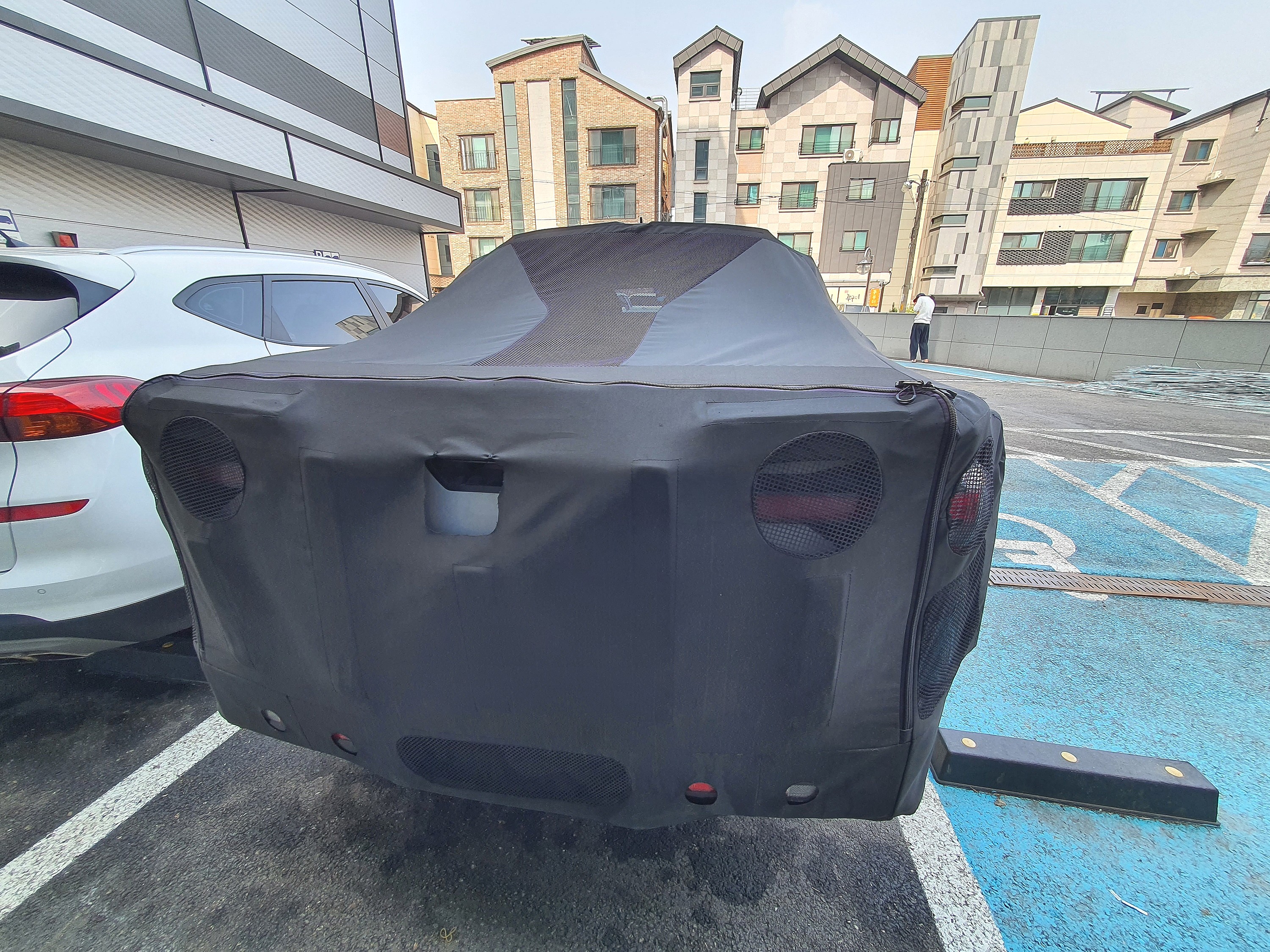 두터운 위장막 커버까지 덮여 있는 상태를 고려해 본다면, 소형 픽업트럭임을 가늠할 수 있습니다.