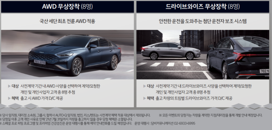 3.5 엔진을 선택한 고객에게만 해당되는 내용으로 220만원 AWD를 8명에게 제공됩니다.