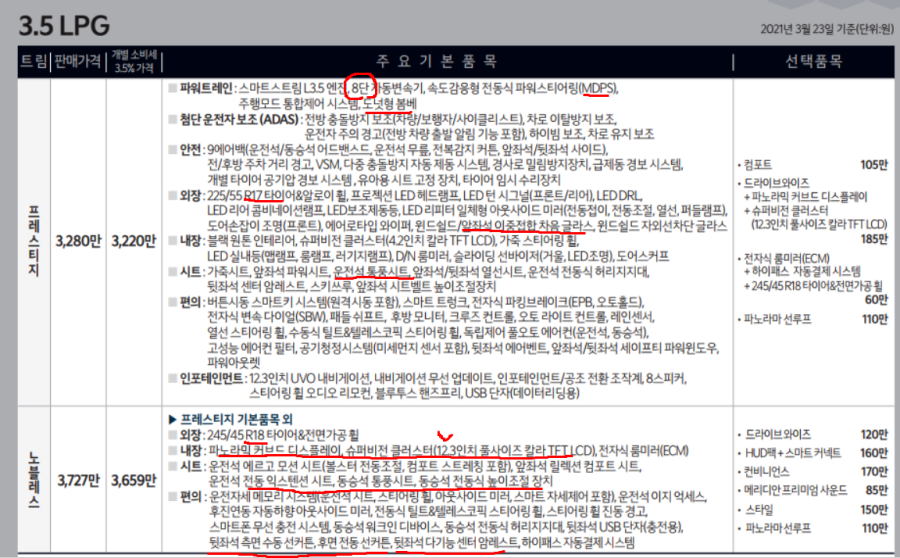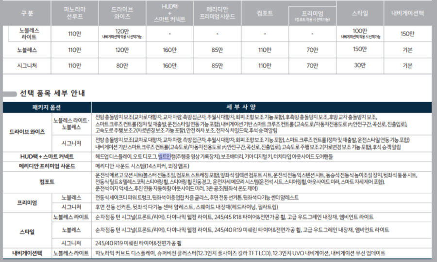 옵션을 트림과 연동되며, 가격에 차이가 있는데, 언제나 말씀드리지만 꼭 필요한 옵션만 선택하셔야 합니다.