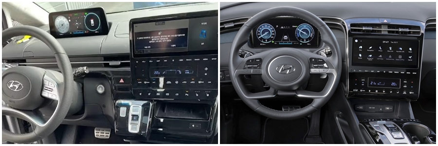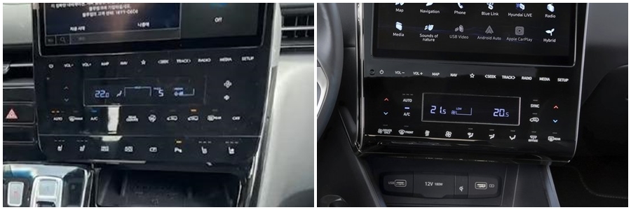 동시에 투싼과 디자인을 비교해 보면 계기판의 디자인을 포함한 사용자 인터페이스까지 유사하며, 내비를 포함한 인포테인먼트의 경우도 디테일에 차이가 있지만 공조기창을 포함해서 대부분의 구성 요소가 유사한 점을 확인할 수 있습니다.
