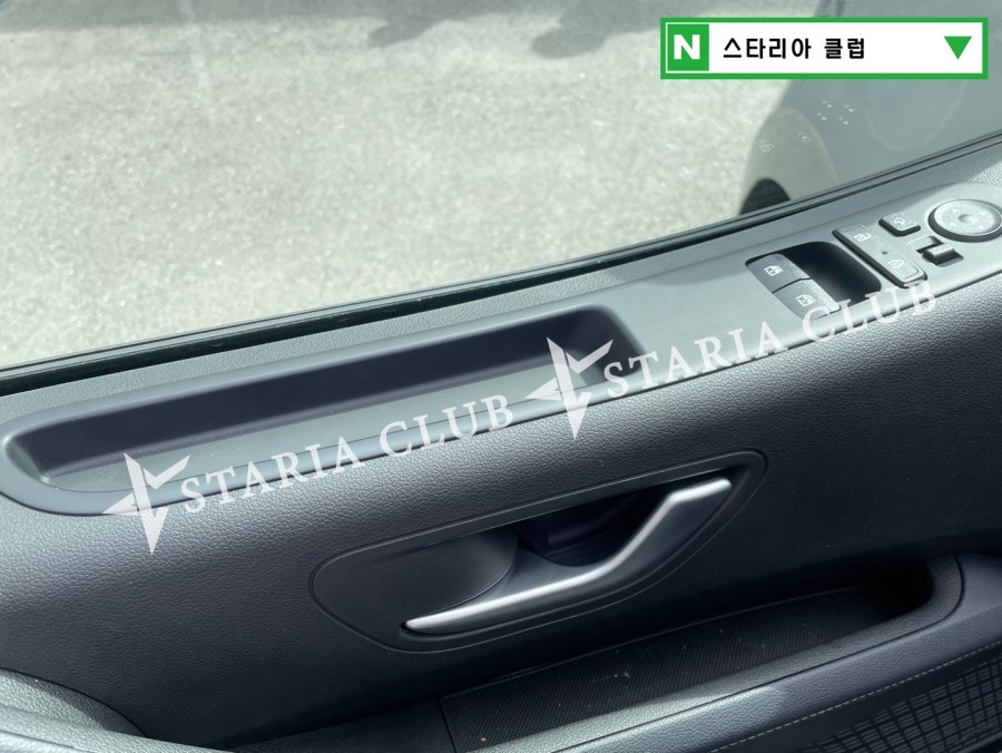 2열 출입구에 도어스커프에는 메탈 재질의 스타리아 레터링이 각인되어 있습니다.