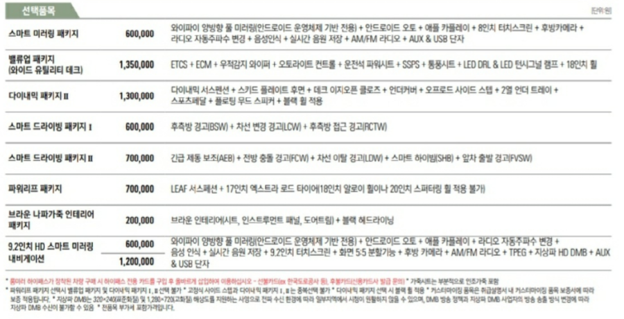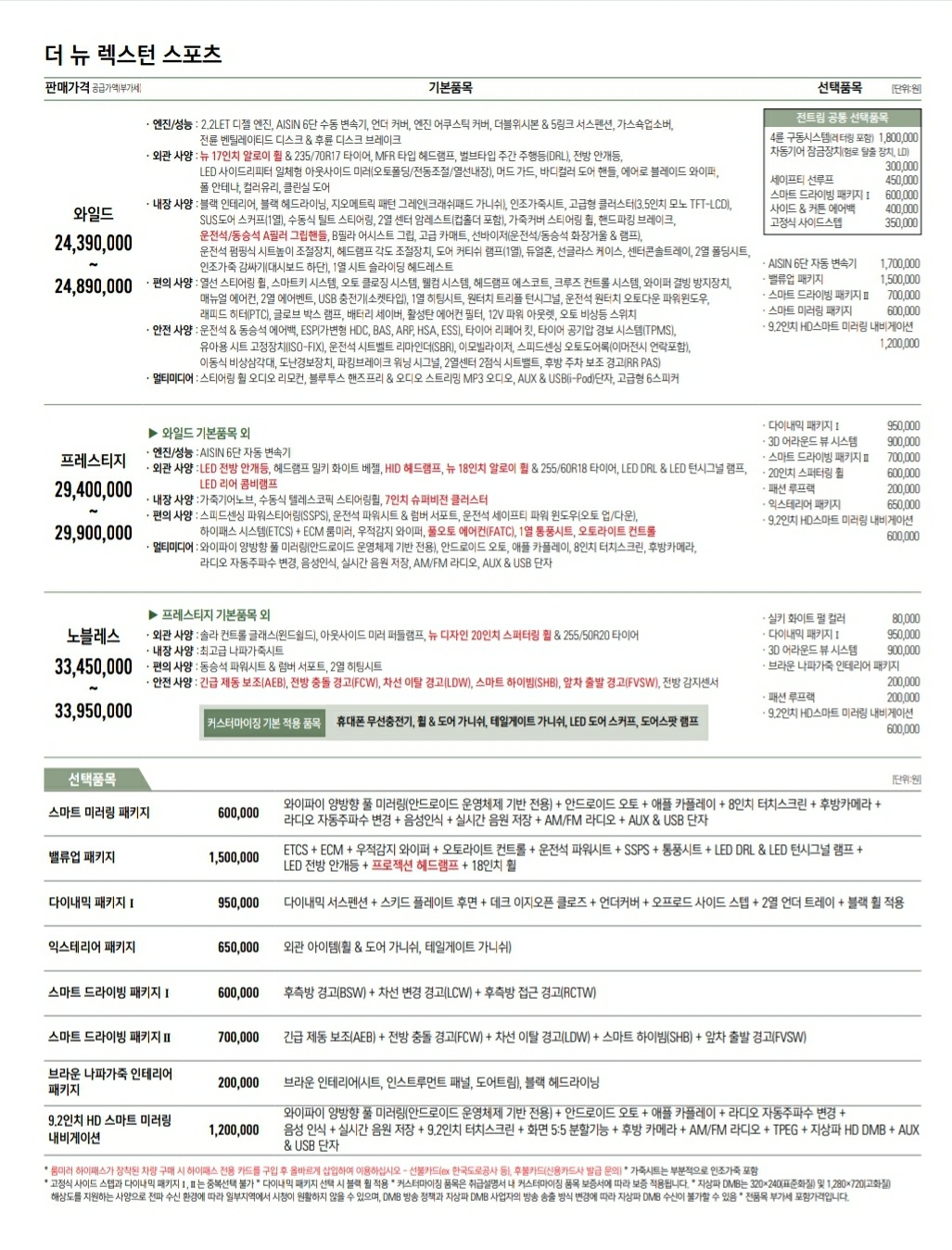 선택 품목의 경우 렉스턴 스포츠와 칸이 동일하기 때문에 참고하시고, 꼭 필요한 항목만 꼼꼼하게 체크해 보시고 구입하시는 현명함이 필요합니다.