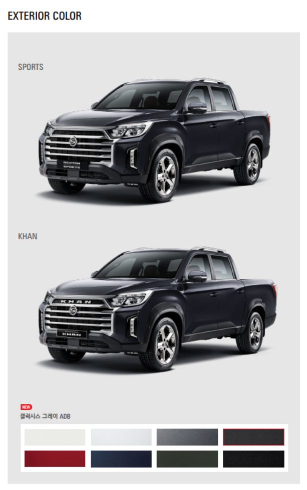 스포츠와 칸의 경쟁 차량이라면 쉐보레 콜로라도와 지프 글래디에이터, 포드 레인저가 될 것 같네요!