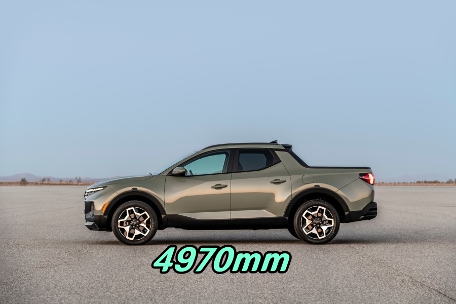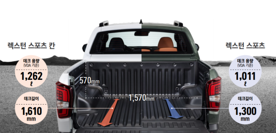 또한 픽업트럭을 대표하는 쌍용차 렉스턴 스포츠와 비교해 보면 두 차량의 전장 차이는 125mm 로 차이가 발생됩니다.
