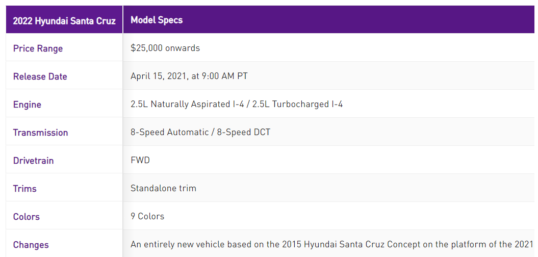 싼타크루즈의 엔진 스펙은 2.5 자연흡기와 2.5 터보차저가 조합된 엔진 2가지로 제공되며, 190마력과 275마력이 제공됩니다.
