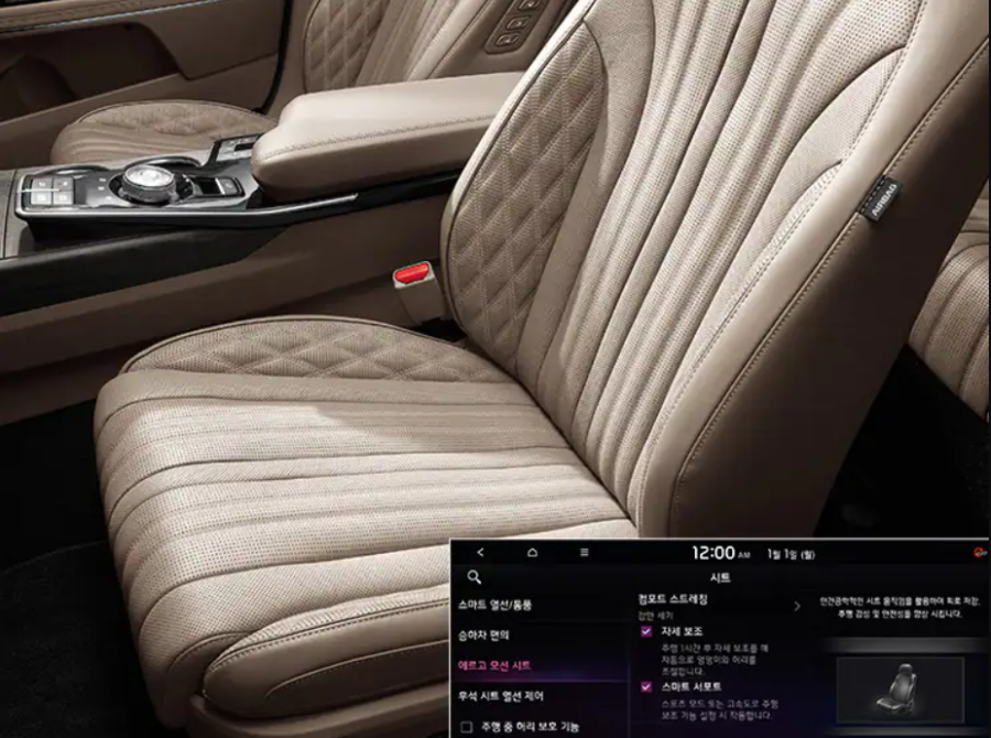 공기 주머니인 신체가 닿는 주요 부위에 7개의 에어셀이 적용된 에르고 모션 시트는 빠른 속도에서는 안정감을 평소에는 최적의 착좌감을 제공합니다. 제네시스 차량만 제공되었던 기능이었는데, 그랜저 풀체인지에도 제공될 것으로 예상합니다.