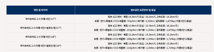 또는 이 정도 가격이라면 400만 원 이상 더 저렴한 2.5 가솔린이 좋은 선택이 아닐까요?