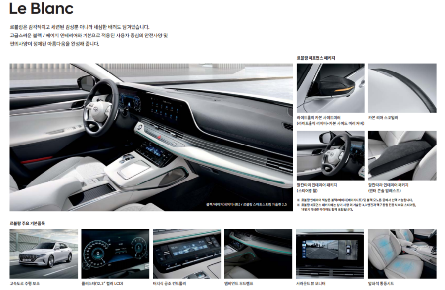 현대차는 차량 이름을 영어로 자주 사용하지만 르블랑은 프랑스어로 흰색을 의미하는데 아마도 "고급감"을 표현하기 위한 작명인 것 같아요!