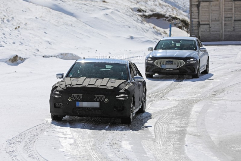 G70와 G70 슈팅 브레이크가 동시에 테스트를 진행하는 차량과 비교해보면 눈으로 구분될 정도로 큰 차이점이 없는 것을 볼 수 있습니다.