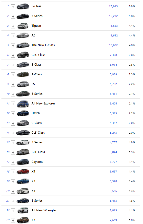 흔하고 흔한 수입차의 경우 얼마나 판매가 되었을까요?