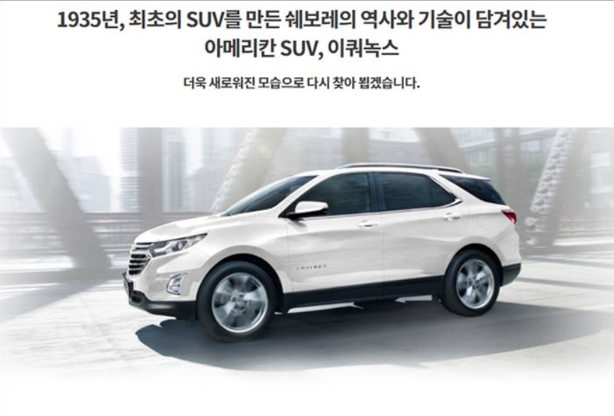 최근까지 한국 지엠 홈페이지에 이런 메시지가 있었는데 현재 이쿼녹스 소개 내용은 홈페이지에 없는 상태입니다.