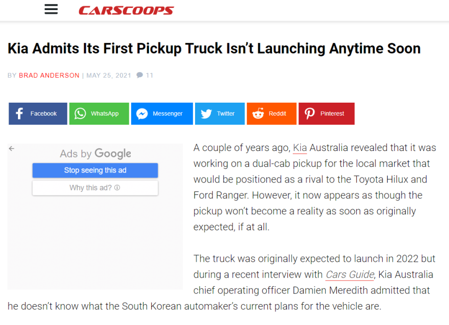 최근 인터뷰를 통해서.. 결론적으로 2022년에 텔루라이드 픽업트럭의 출시는 불투명해진 것 같네요!