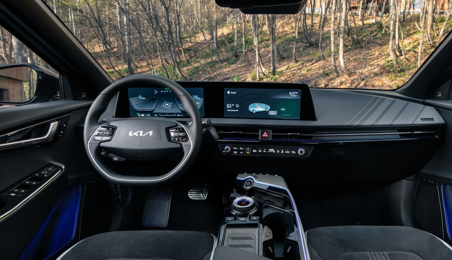 기아는 계기판과 내비게이션이 하나로 연결된 디자인을 내연기관 차량뿐만 아니라, 최근 선보인 EV6에서 그대로 사용하는 것을 볼 수 있습니다.