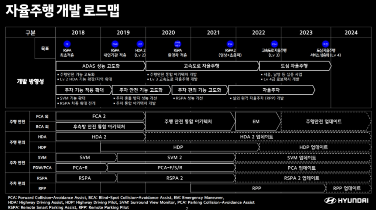 현재는 고급 기술을 제공하는 제네시스 차량의 경우에 주변 환경을 스캔해 줘야하기 때문에 완전한 자율이라고 보기에는 범위에 차이가 있습니다.
