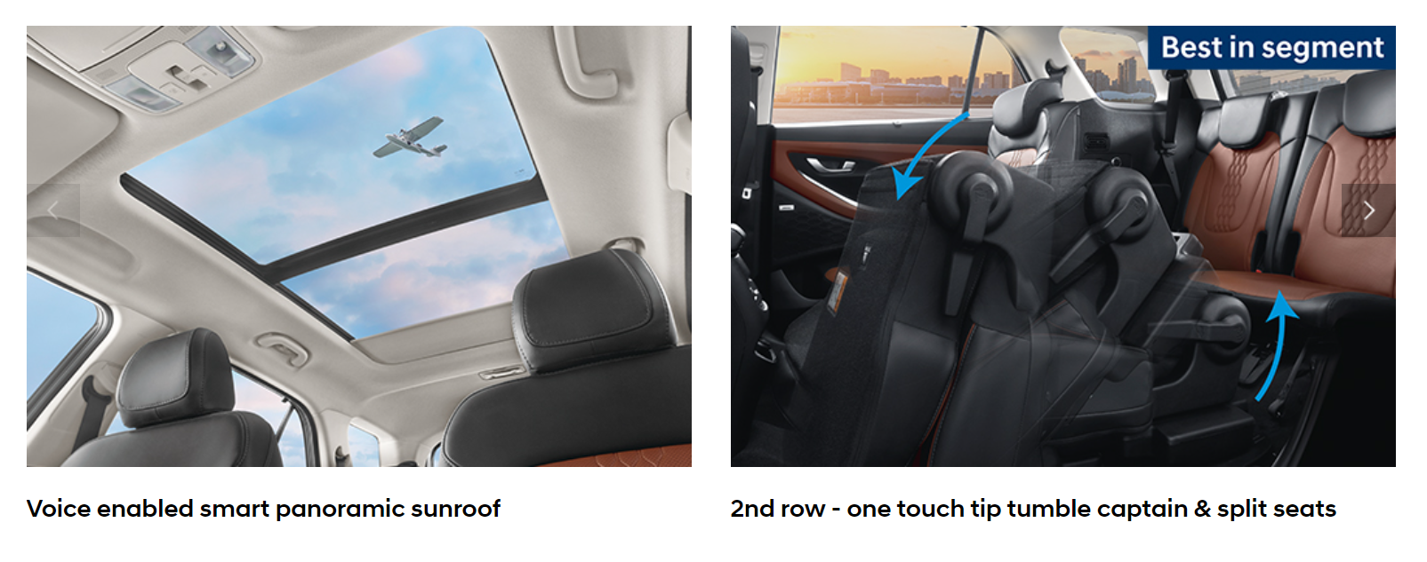 커다란 파노라믹 선루프와 작은 차량에서 3열로 쉽게 이용하기 위해서 2번 접히는 방식의 텀블 캡틴 시트도 좋네요!