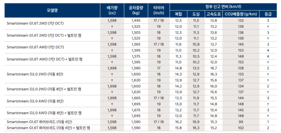 연비는 투싼과 거의 동일할 것으로 예상합니다. 특히 하이브리드 차량의 CO2 배출량도 훨씬 작기 때문에 신차를 구입하면서 지구 환경까지 보호할 수 있다는 점에서 기분까지 좋죠!