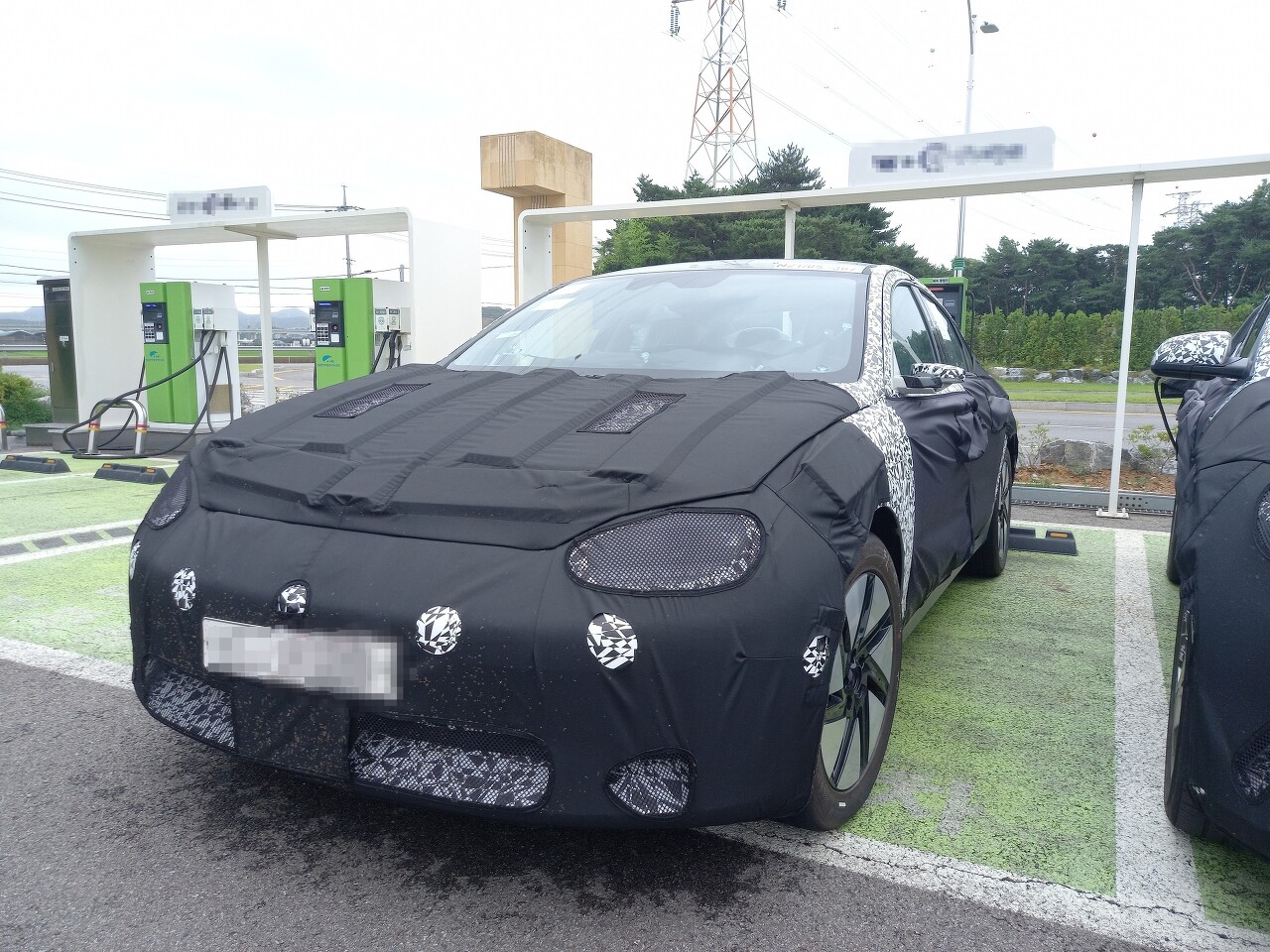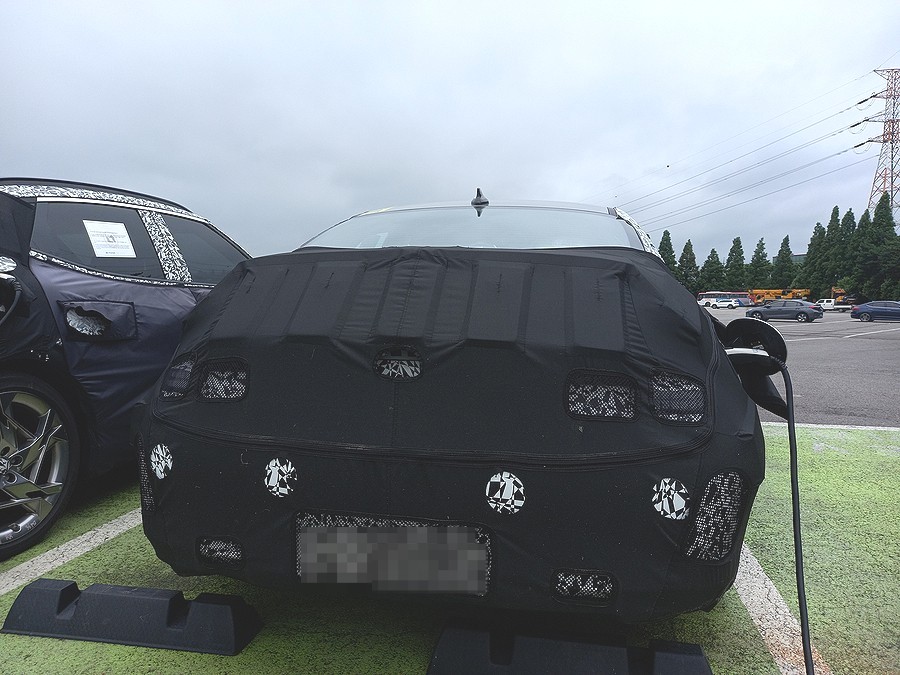 두터운 위장막 커버로 가려져 있지만, 보닛의 파팅 라인을 볼 수 있는데 아이오닉5와 EV6처럼 보닛을 완전히 덮는 크램쉘 낮고 날렵한 느낌은 찾아볼 수 없네요!