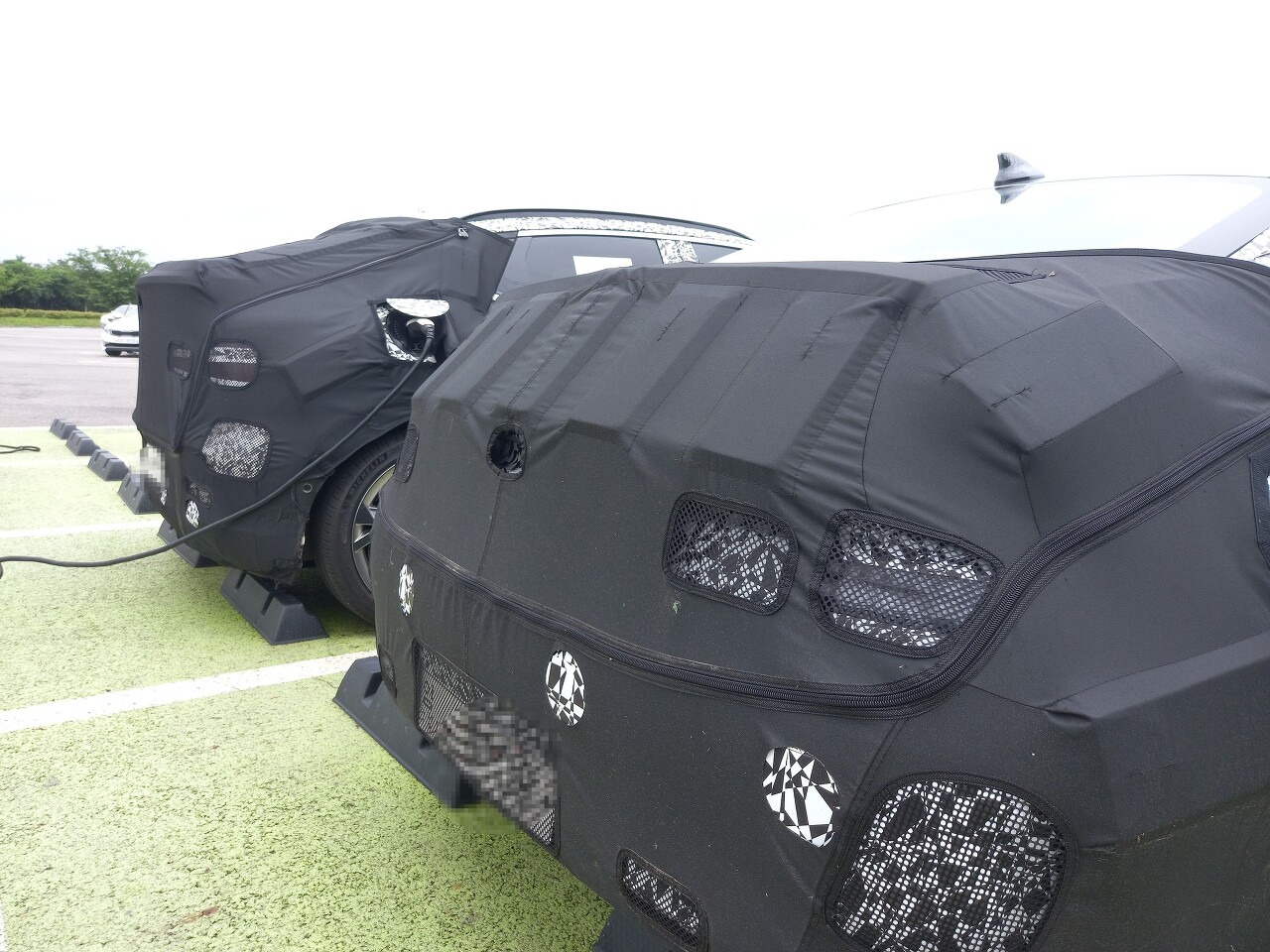 두터운 위장막 커버로 가려져 있지만 스포일러를 짐작해 볼 수 있으며, 양산화 과정에서 파라메트릭 픽셀은 범위기 크게 줄어든 것 같아요!