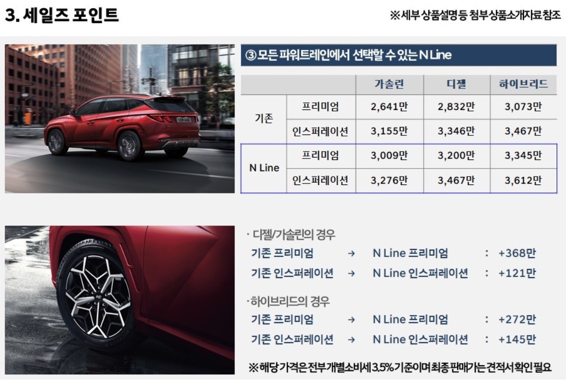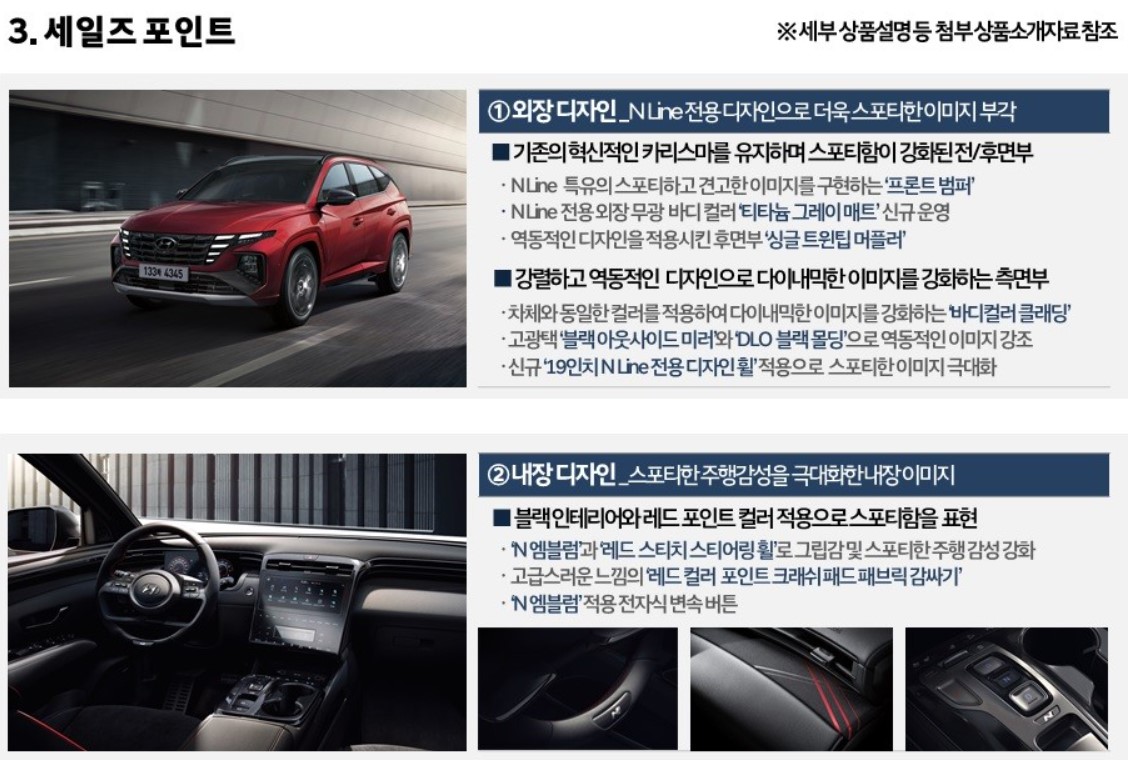 그리고 상대적으로 조용하게 공개된 차량이 있는데 바로 투싼 N Line 입니다.