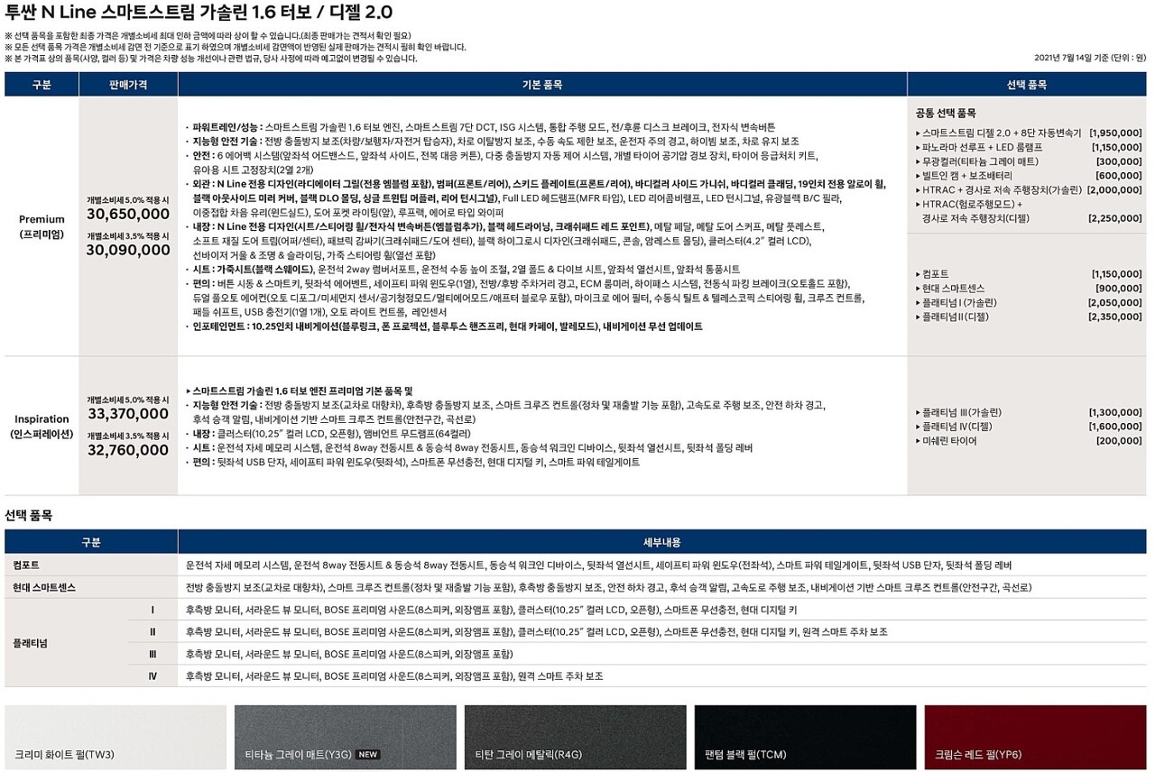 그런데 말입니다. 훨씬 비싼 가격에 판매되는 N Line 에는 아쉽지만 투톤 외장 컬라가 제공되지 않은 것 같아요.