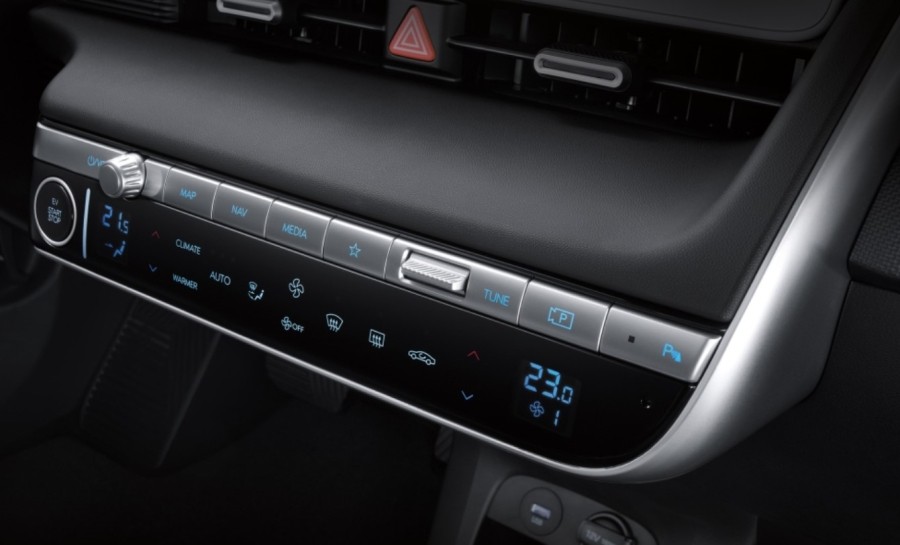 버튼을 최소화한 디자인으로 공조기 컨트롤과 인포테인먼트 컨트롤 역할을 함께 제공하죠!