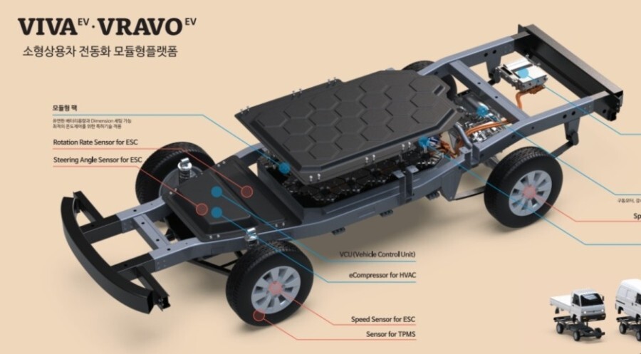 비바와 브라보 전기차는 소형사용차 전동화 모듈형 플랫폼으로 제작이 되었어요!