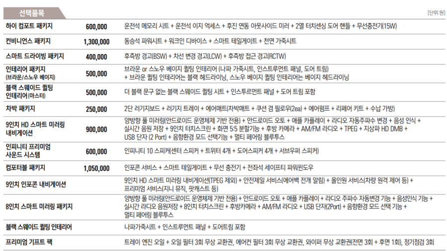 이 정도 가치가 충분하다고 생각하시는 분들에게는 충분히 좋은 선택이 될 수 있고, 또 다른 분들에게는 차 값을 올리는 요소가 될 수도 있겠죠?