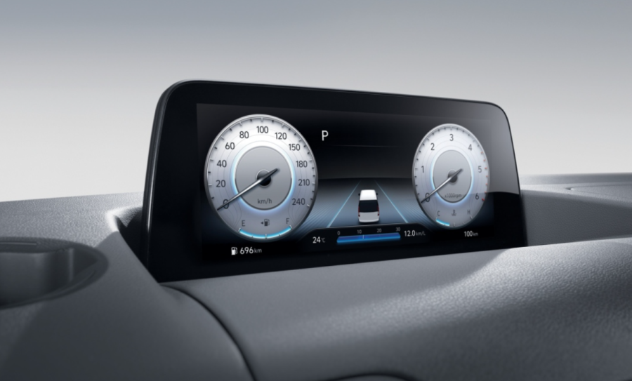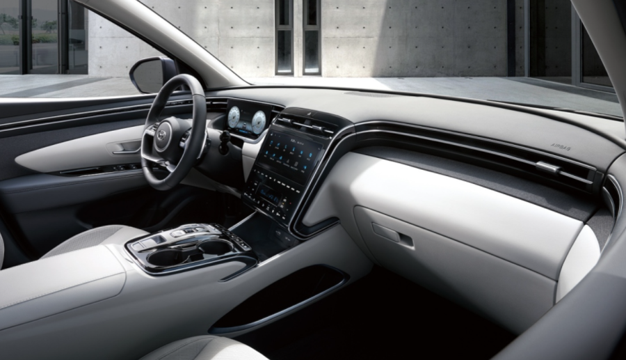 네모난 계기판은 10인치 정도로 예상되며, 투싼은 계기판을 감싸는 테두리가 없지만...