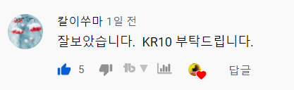 영상을 보시고 KR10도 알려주세요! 구독자분들의 요청이 있으셨어요!