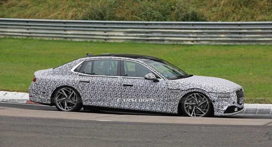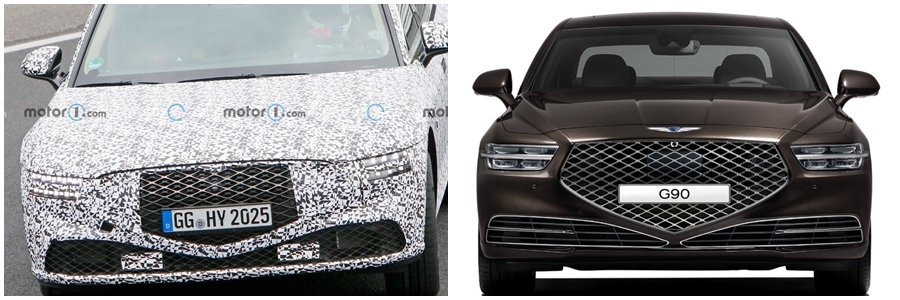직접 비교해 보면, 공식 사진도 아닌 테스트 차량인데, 기존 G90이 통통해 보일 정도로 압도적인 측면부 디자인을 보여주네요!
