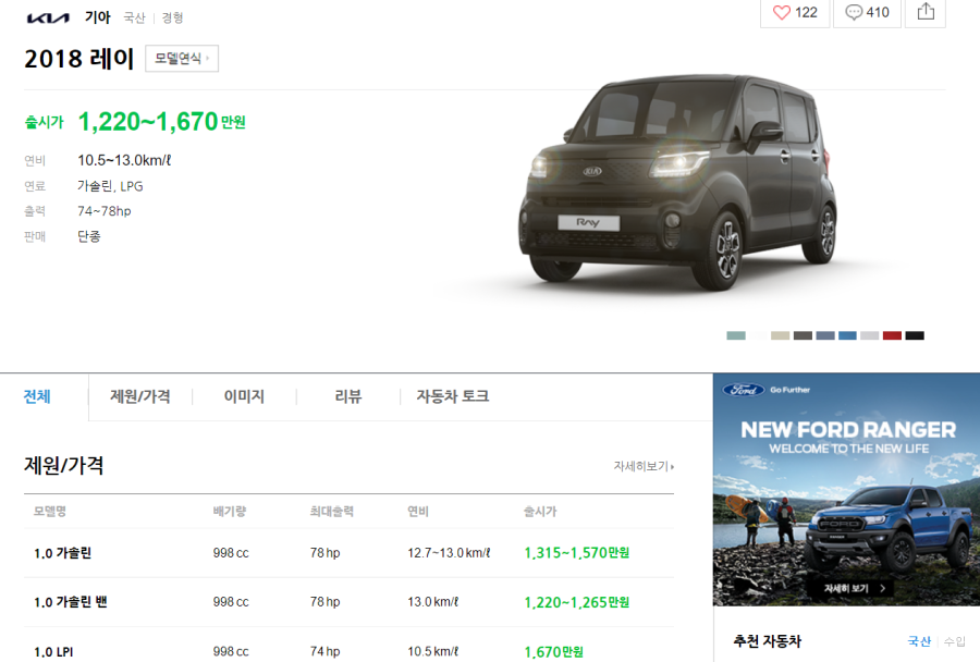 강력한 경쟁 상대인 기아 레이의 경우 최근까지 LPG 모델 출시되었고, 중고차 시장에서 없어서 구입하기 힘들 만큼 큰 인기를 얻고 있죠