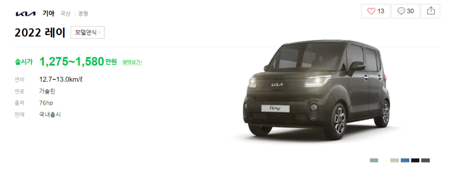 모닝을 아니고요. 레이와 치열하게 경쟁하게 될 것 같네요!