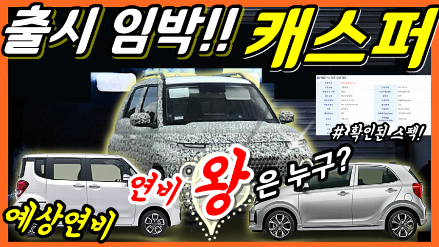 이번 영상에서는 배출가스 인증 정보가 확인되면서 확인된 몇 가지 스펙을 통해서 곧 출시될 캐스퍼 가솔린과 터보 엔진의 연비를 예상해 봤는데요.