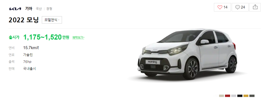 모닝을 아니고요. 레이와 치열하게 경쟁하게 될 것 같네요!