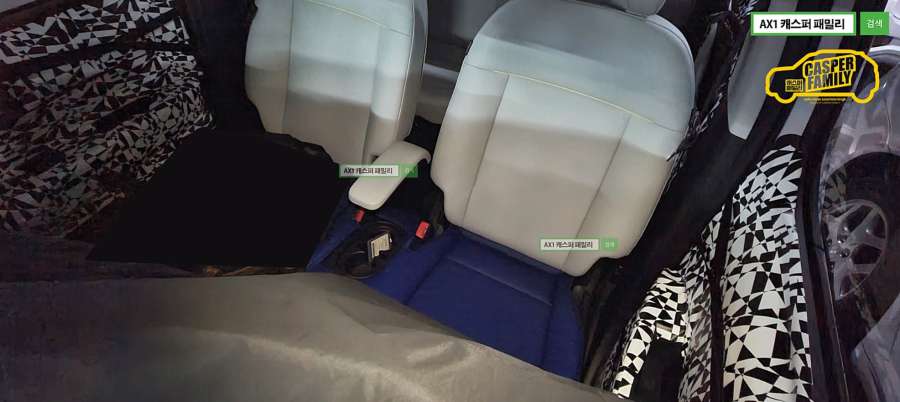 이런 것을 인식한 것인가요? 포착된 캐스퍼의 시트는 독특한 색상으로 귀여운 캐스퍼만의 개성을 강조하고 있는 것 같아요!
