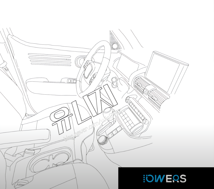 스케치를 보면 송풍구 바로 위에 8인치 사이즈로 예상되는 인포테인먼트를 볼 수 있네요!