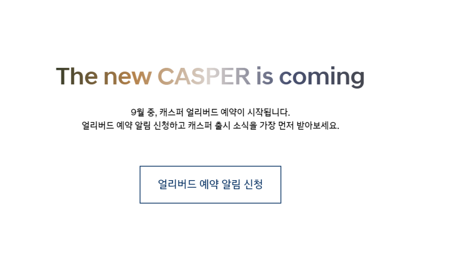 세 번째 단계는 캐스퍼 론칭이죠? 현재까지는 Coming soon으로 표기되어 있는데, 시간이 지나면 확정된 날짜를 볼 것 같은데, 9월 중순인 15일 전후가 가장 유력해 보입니다.