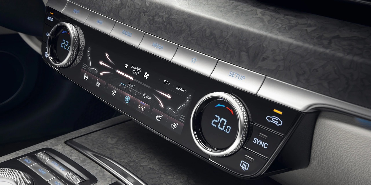 G80이나 GV80에서 제공되는 공조기 디자인과는 완전히 다른 디자인이 새롭게 적용되었습니다.