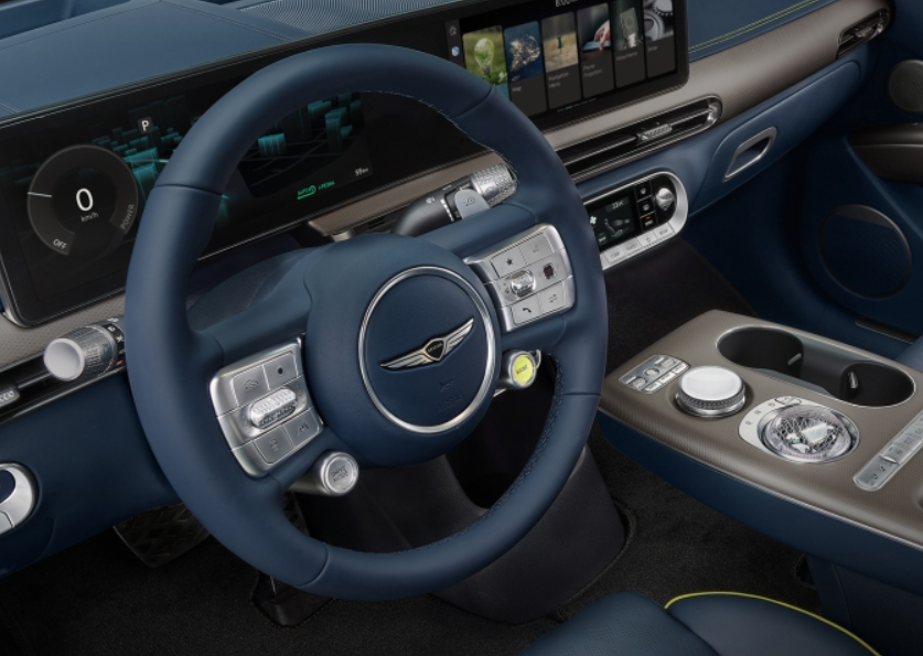 그리고 최근 공개한 제네시스 순수 전기차에서 선보인 GV60 스티어링 휠은 안정적인 디자인에 편의성을 강조한 디자인으로 새로운 전기차보다는 기존에 익숙한 느낌의 디자인이 특징입니다.