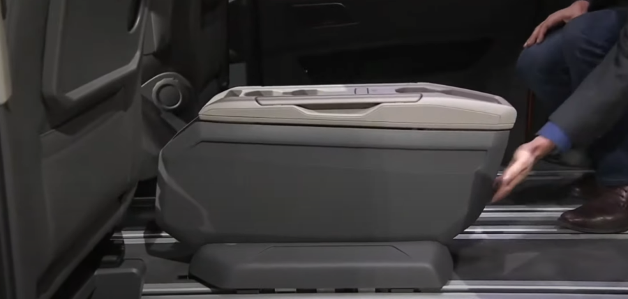 시트 하단에는 태블릿이나 음료수 등을 보관할 수 있는 수납함이 제공됩니다.