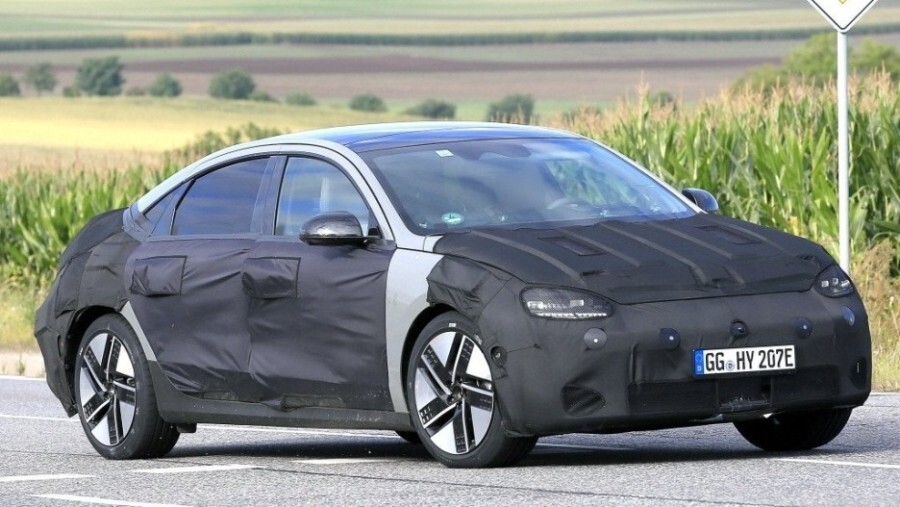 아이오닉 6의 두터웠던 위장막 커버가 제거되었습니다.