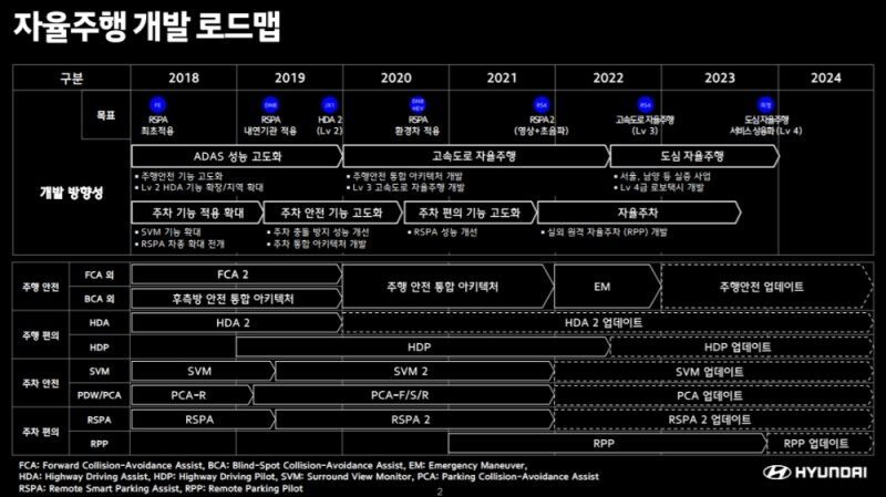 2022년부터 레벨3 고속도로 자율 주행이 표시되어 있어요.